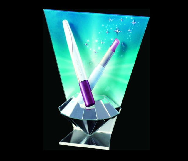 星空无限传媒官网唇膏展示架(jià)是我司為OLAY設計及生產的唇膏展示架,背麵(miàn)底(dǐ)色還是采用套裝的主色調,但底部卻更改(gǎi)為有反射效果的鏡麵材料,加(jiā)上3D的立體鑽石形狀,更能展現唇膏的閃閃效果。