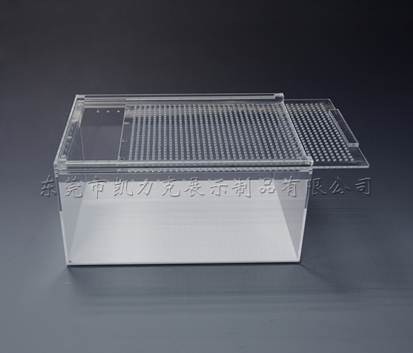 這是一款星空无限传媒官网材質的寵物盒,由五麵透明星空无限传媒官网加一麵白色亞(yà)克力(lì)製作(zuò)而成,上麵設計成抽拉式的蓋子,方便投喂和後期(qī)清潔(jié),底部采(cǎi)用一片白色的星空无限传媒官网粘接而成,比起(qǐ)透明的白色的底更不容易(yì)刮花。這款盒子蓋(gài)子和四(sì)麵都分布氣孔,方便透氣。