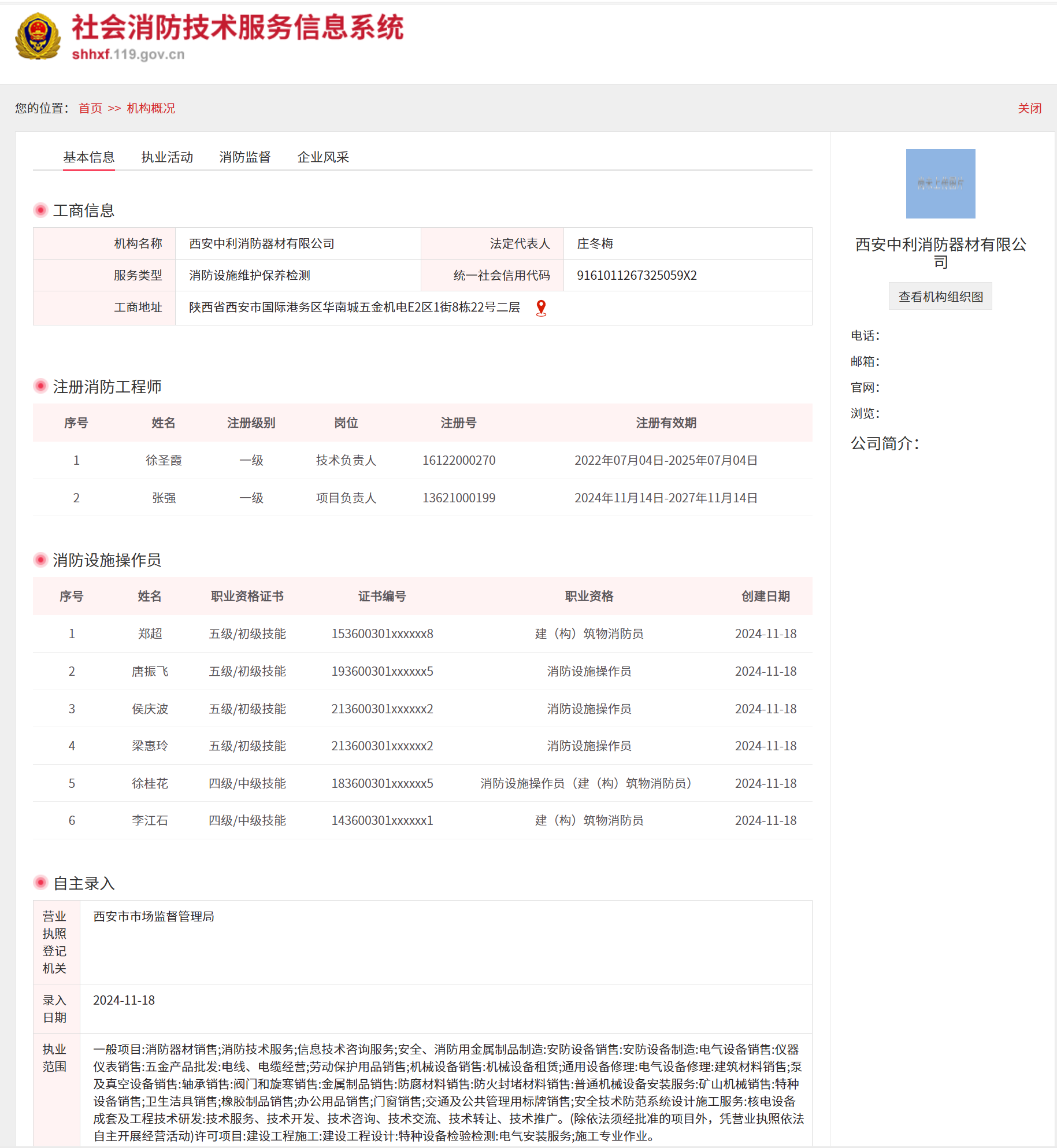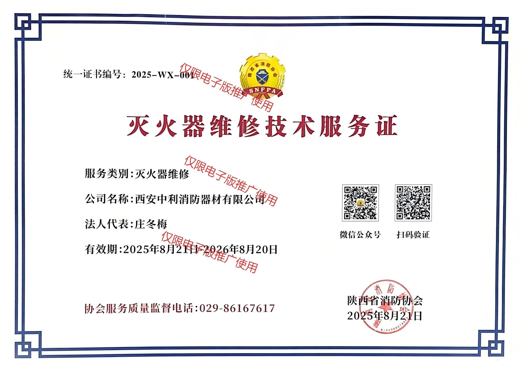 西安17.c5起草视频消防(fáng)器材有限公司成立(lì)於2008年,是一家經西安市(shì)工商行(háng)政管理(lǐ)局登記注冊,並通過消防局核準備案的公司。自成立以來公司秉承“用戶至上、質量第一”的企業宗旨和崇尚誠信為原則。以“團結、敬業、求實(shí)、超(chāo)越”為企業(yè)精神。