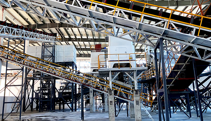 設備配置:ZSW振動喂料(liào)機、PE歐版顎式破碎機、HP歐版圓錐破(pò)碎機、PCX高效製(zhì)砂機、YK圓振篩、QZF輕物質分離器等全套裝備