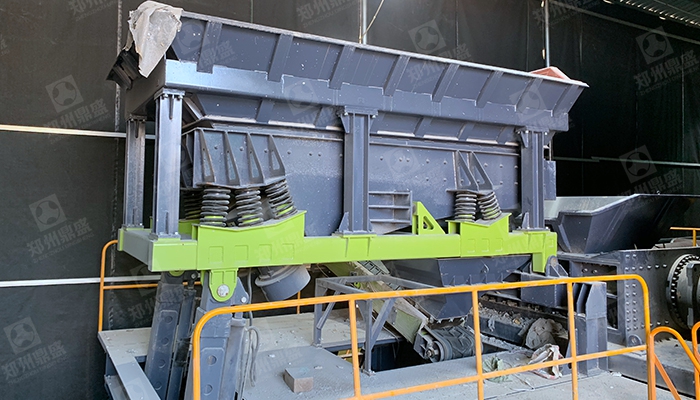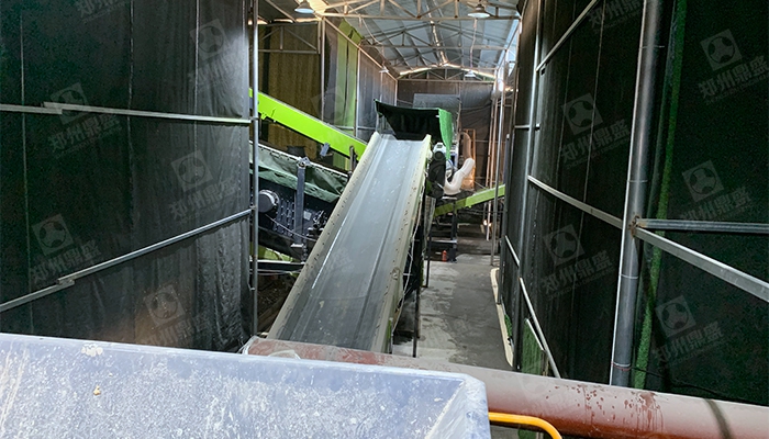 混合料經過輸送機輸送(sòng)至複合階梯篩,複合階梯篩上層為指形棒條,按階梯排布,不易堵塞,上層篩分出混合料中的大粒徑物料,≤50mm以下物料進入二層篩(shāi)網(wǎng),二層篩網為聚氨酯篩(shāi)網(wǎng),具(jù)有弛張收(shōu)縮能力,不會堵塞網孔,≤15mm渣土及細骨料通過篩離,通過成品輸(shū)送(sòng)機輸送至成品料庫,>15mm以上物料(liào)隨上層篩分出的大粒徑物料(liào)混(hún)合進入下一級輕重分離模塊;在(zài)此單元中,設定有氣箱(xiāng)脈衝袋式(shì)除塵器,對粉塵進行收(shōu)集,保證複合階梯篩(shāi)篩分中工況(kuàng)條件。