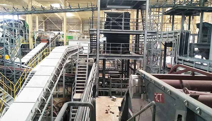 主體工藝:選用“棒條篩、雙齒輥破碎、振動篩、磁選、風選(xuǎn)、光選、反擊破碎、磁選、振動篩、渦(wō)流分選”的主工藝。