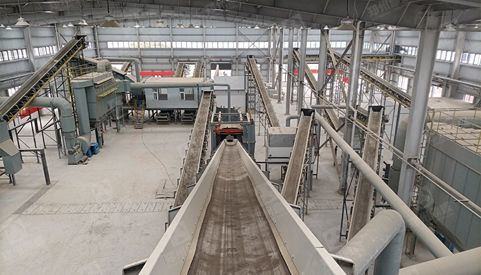 預處理階段:裝修垃圾首先通過運輸(shū)車輛送入料鬥,由振動給料機均勻地送入破碎機進行初步破碎。破碎機可將較大的垃圾塊破碎成較小的顆粒(lì),便於(yú)後續的分揀處理(lǐ)。
