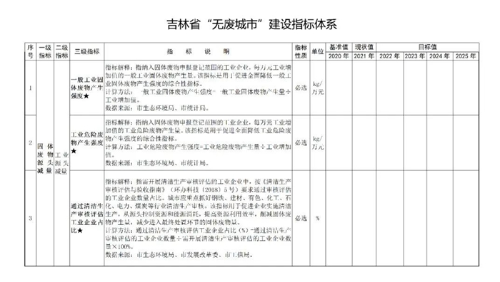 附件:吉(jí)林省“無廢城市”建設指標體係