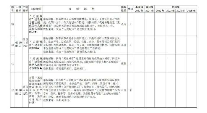 三、紮實開展(zhǎn)“無廢城市”建設評估。為確保“無廢城市”建設取得實效(xiào),各地要(yào)以2020年為基準年(nián),開展“無廢城市”建設評(píng)估工作,按照《吉(jí)林省“無廢城市”建設(shè)指(zhǐ)標體係》(見附件)中(zhōng)的25項必選指標、8項推薦指標、25可選指標,摸清本地區“無廢(fèi)城(chéng)市”建設(shè)底數(shù),並於明年1月底前,將評估結果報送(sòng)至我(wǒ)廳,為準確評估“十四五”時(shí)期“無廢城市”建設情況(kuàng)提供基礎數據。