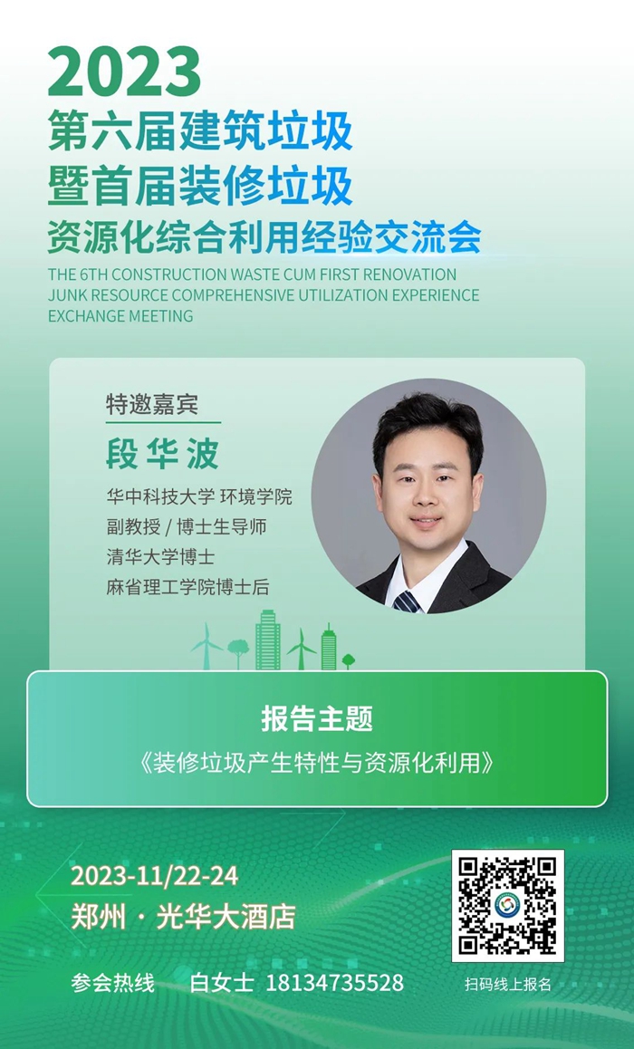 會議特邀(yāo)專家(十二)華(huá)中科技大學環境學院段華波(bō)副教授:《裝修垃(lā)圾產生特性與資源化利(lì)用》